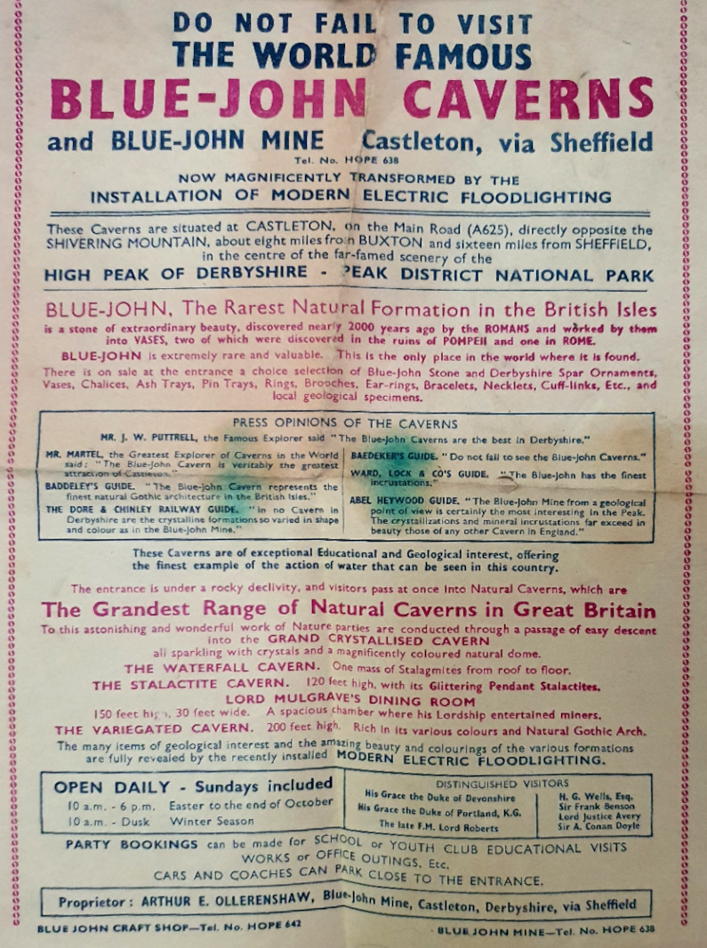 And in 1970, Guy visited the "World Famous" Blue John Caverns and Mine. Full story on page 140 of the book!