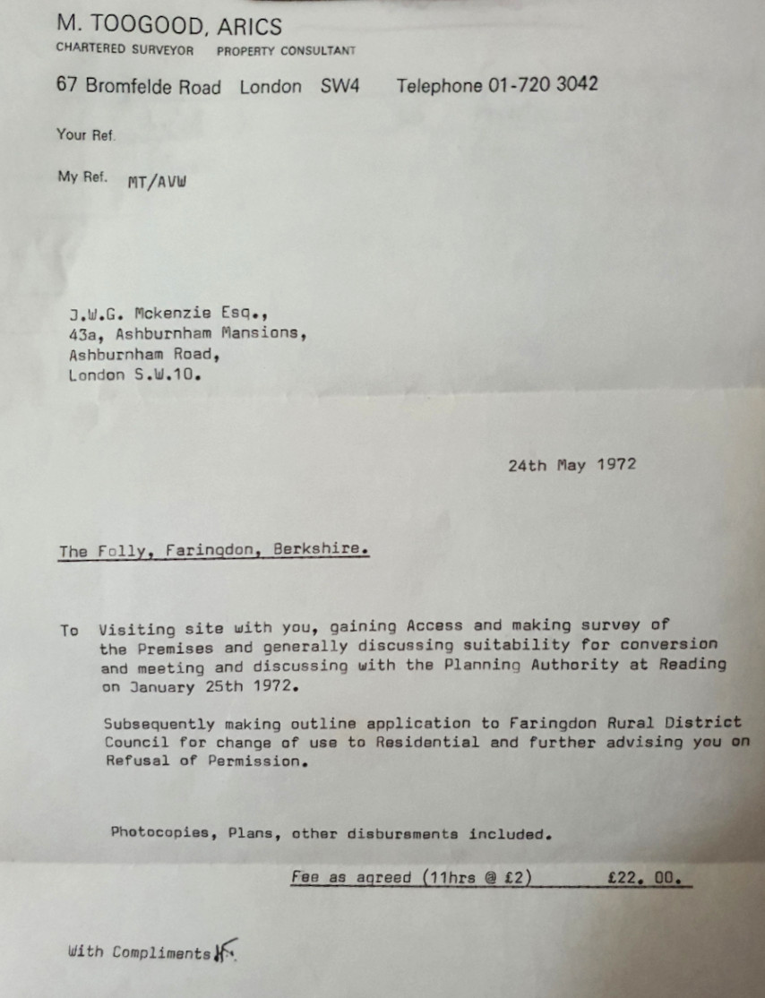 Guy tried to buy this folly in 1972. The surveyor's bill for the structural survey and submitting a planning application... just £22!